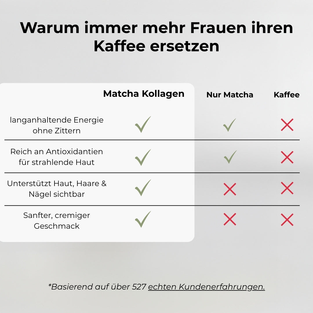 Matcha Kollagen ist unsere einfache Lösung für Menschen, die Kaffee nicht mehr guttut und ihrem Körper langfristig etwas Gutes tun möchten.