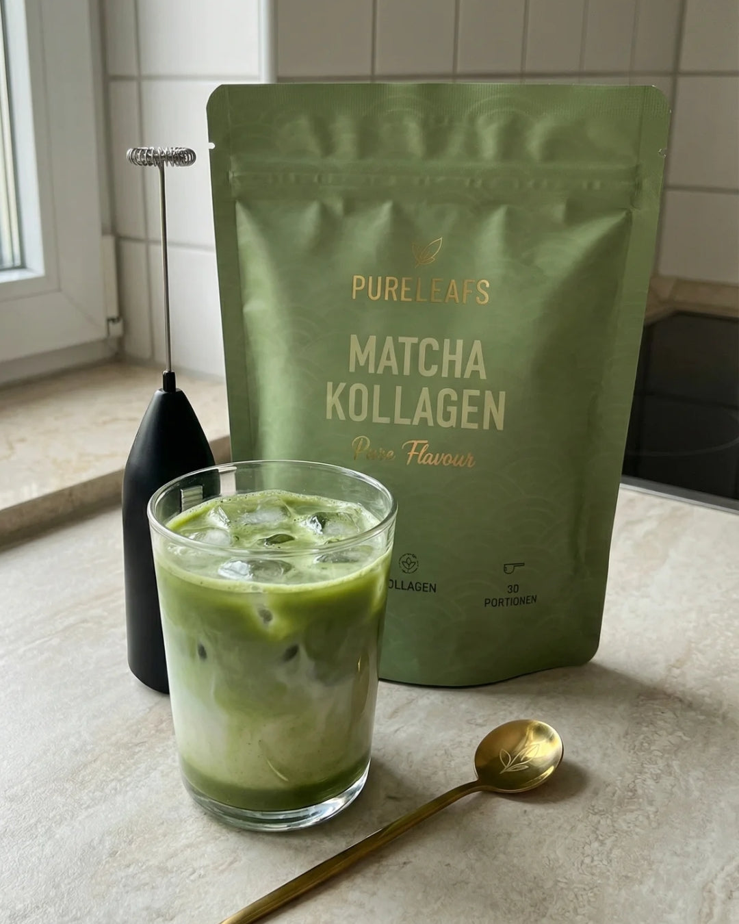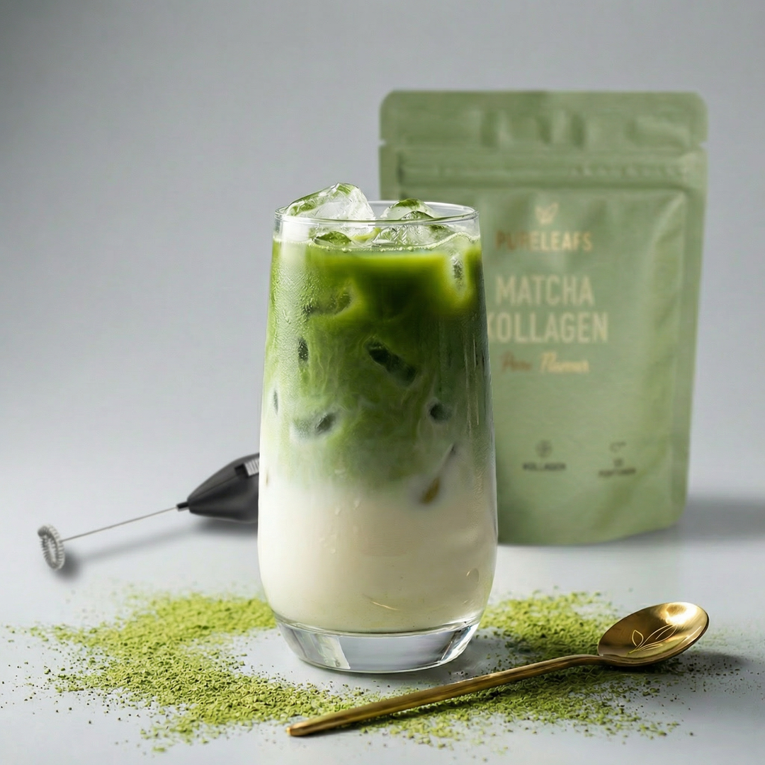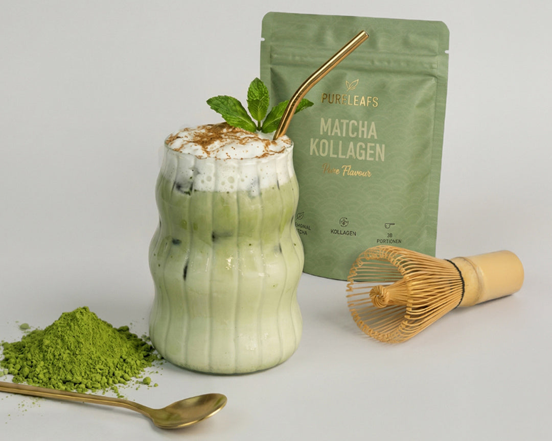 Pureleafs setzt auf 75% Ceremonial Matcha und 25% reines Kollagen – für Wirkung & Geschmack.